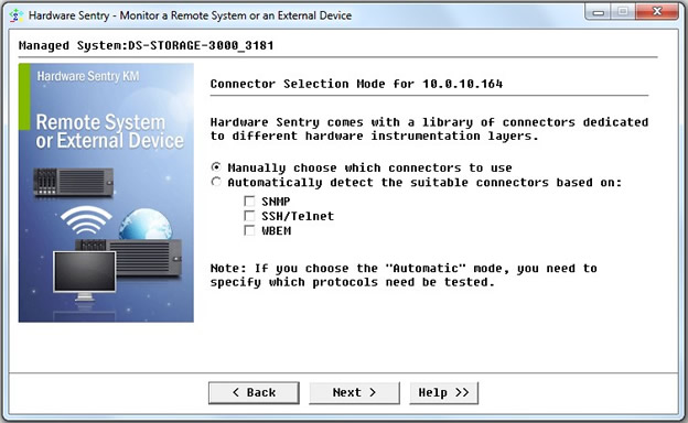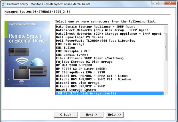 - Manually select the SMCLI connector: IBM DS (LSI) Disk Arrays (smcli) and click Next.