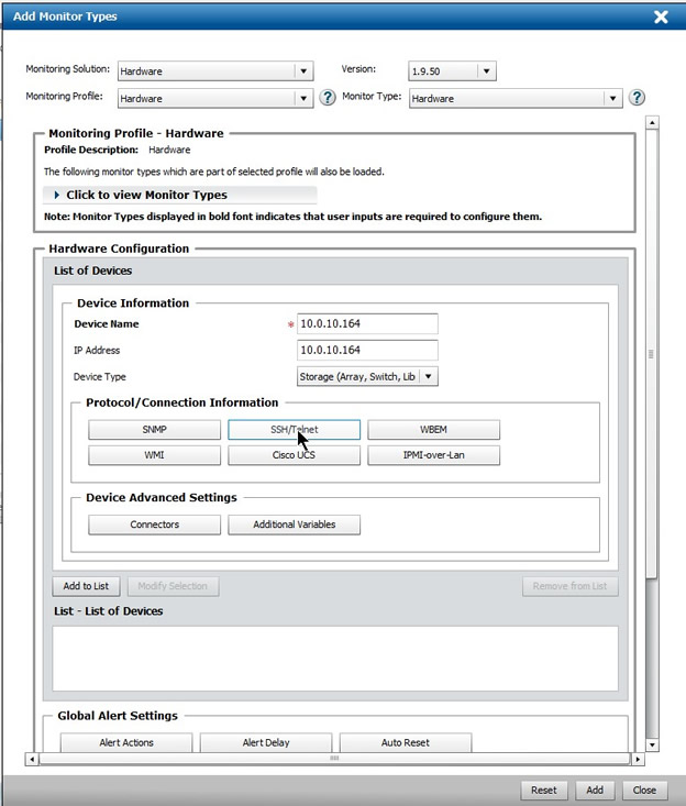 - Specify the Monitoring Solution and Monitor Type to be configured: