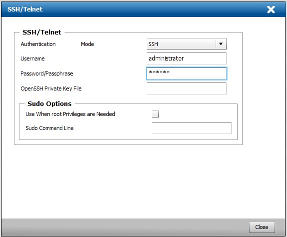 - Provide the appropriate SSH credentials and click Close.
