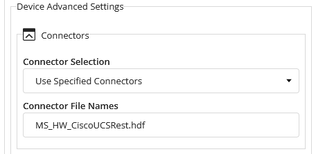 In the Connector File Names, enter the name of the connector you wish to use, that is MS_HW_CiscoUCSRest.hdf for Cisco UCS.
