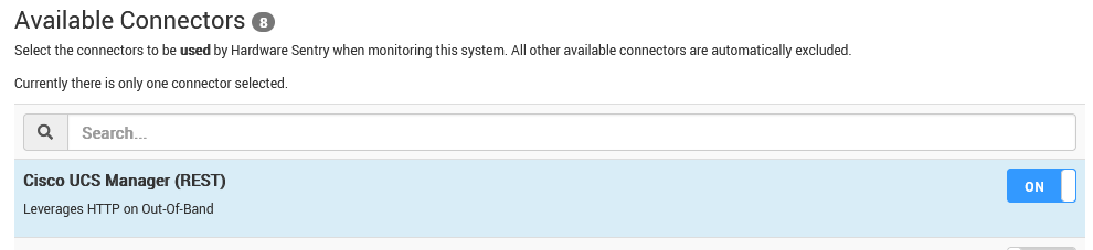 Under Available Connectors, search for Cisco UCS Manager (REST), and click the slider to enable it.