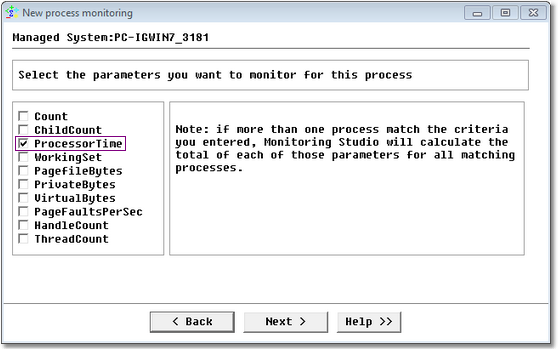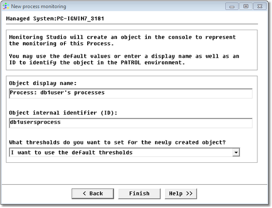 Monitoring Studio then creates an object that monitors the processor time utilization of all processes that belong to db1user.