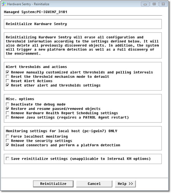 - Right-click any Hardware Sentry host instance and select [KM Commands - Reinitialize].