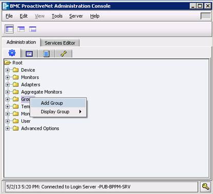 - Resume this step to add as many child groups as required to get this type of tree view in the BMC ProactiveNet Administration Console: