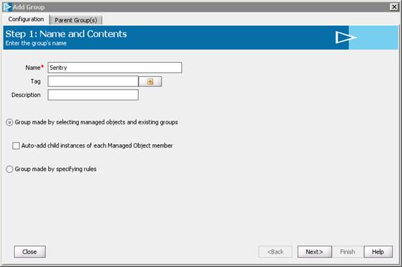 - Enter the group name (e.g.: Sentry) and click Next.