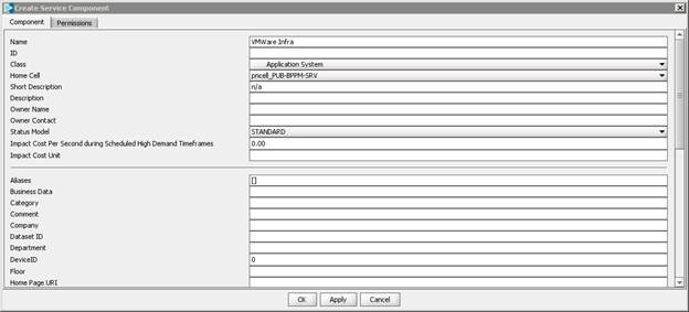 Create Components icon and create for example the VMWare Infra Application System:
