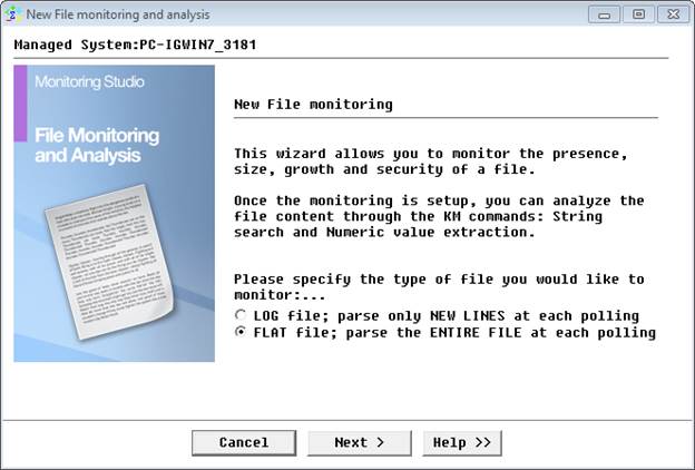 From the KM Commands menu, select New > File Monitoring and Analysis: