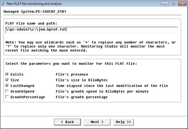 - Select also the required parameters to be monitored (Exists, Size etc)