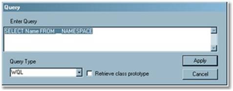 SELECT NAME FROM __NAMESPACE - Click Apply.