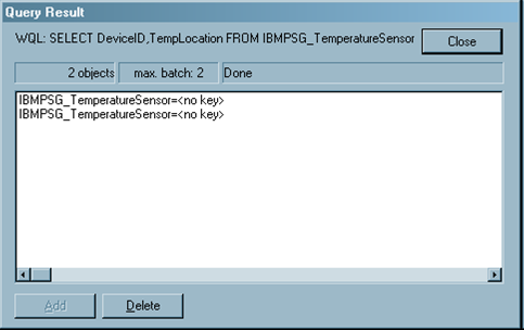 - In the Enter Query box, type: SELECT DeviceID,TempLocation FROM IBMPSG_TemperatureSensor
