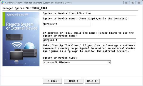 - Enter the Name and IP Address of the Windows 2008 server to be monitored, select Microsoft Windows, and click Next