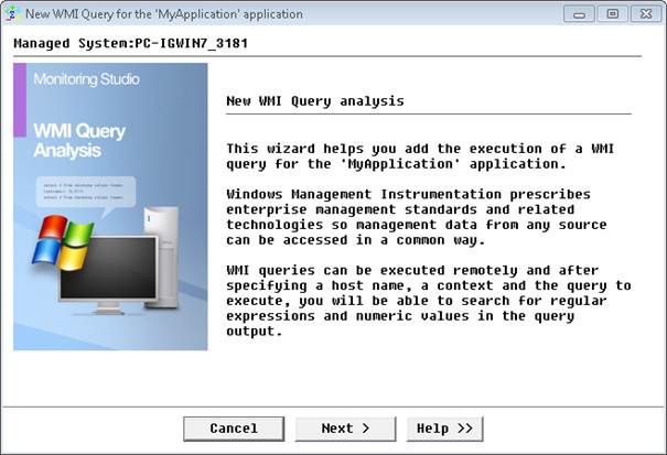 - Right-click the Application Container main icon > KM Commands > New > WMI Query Analysis and click Next.