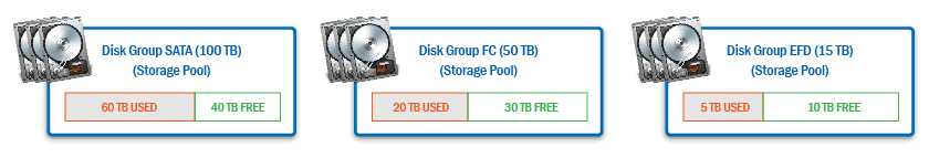 - (1) EFD Disk Group with 15TB of capacity, of which 5TB are consumed and 10TB are available.