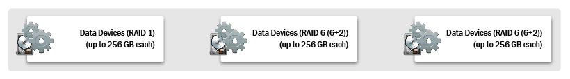 Disk groups are then split into Data Devices and RAID configuration is applied. In our example, we created RAID 1 and RAID 6 (6+2) data devices of 256GB each.