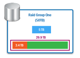 - (1) RAID-5 (4+1) with 40TB of capacity, of which 16TB are consumed and 24TB are available